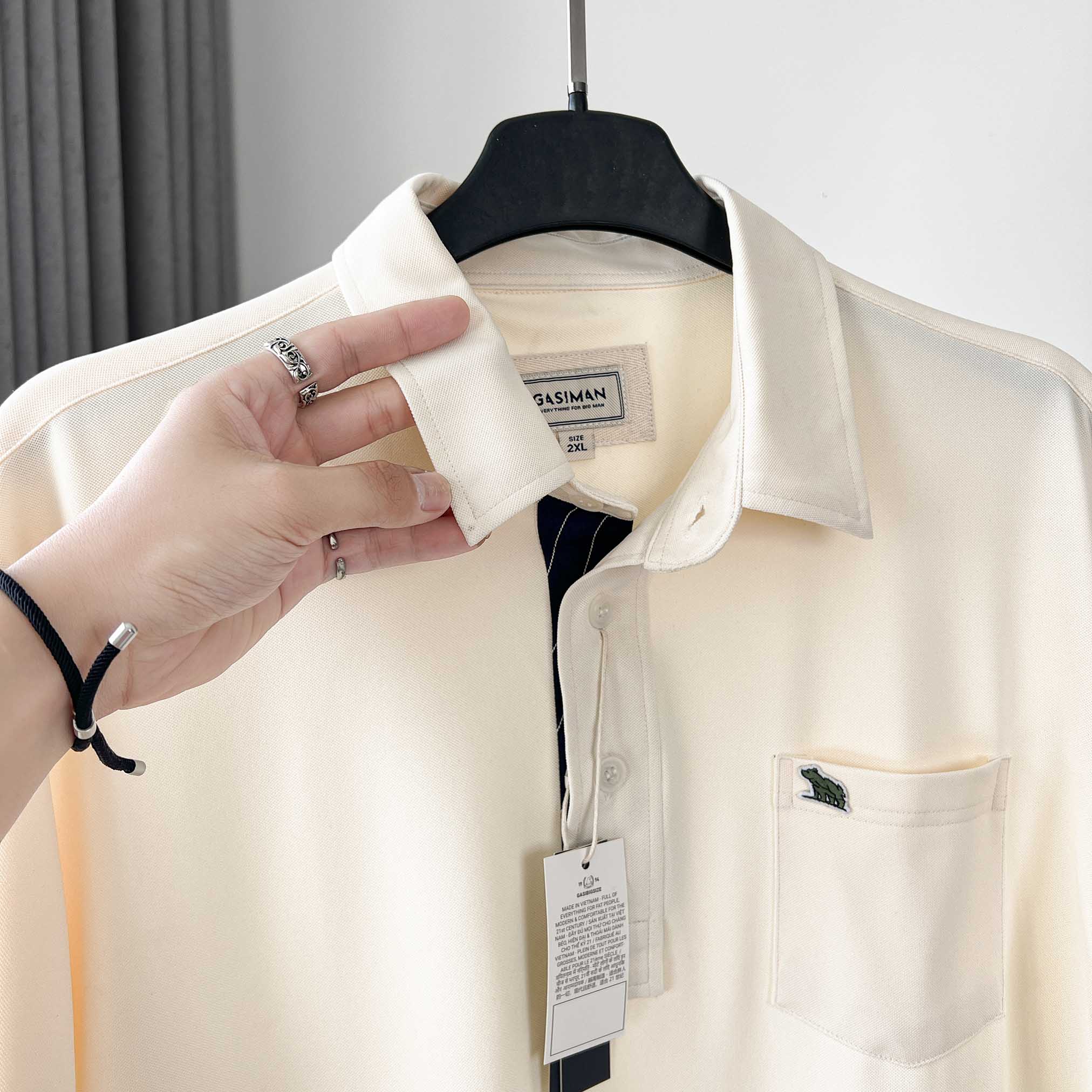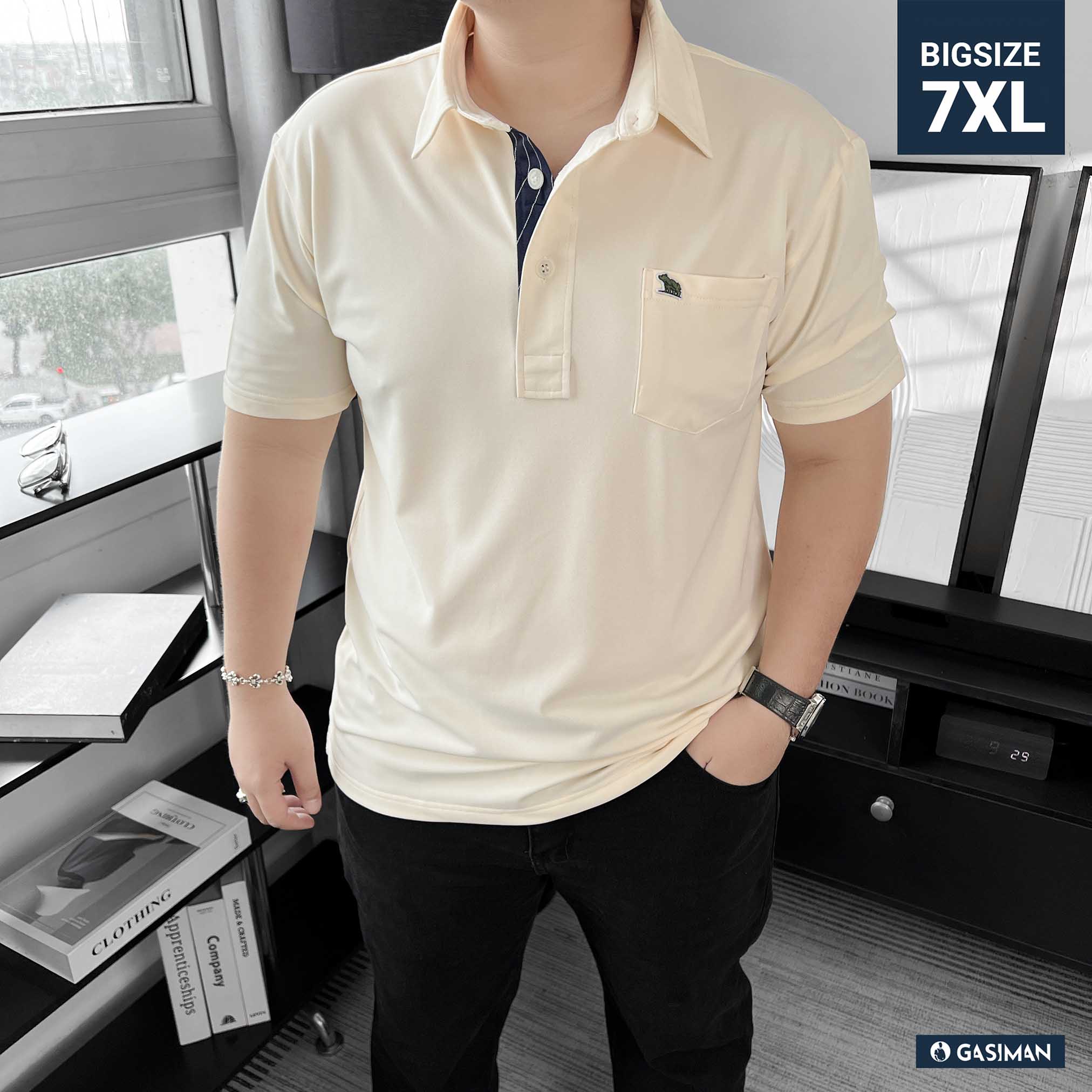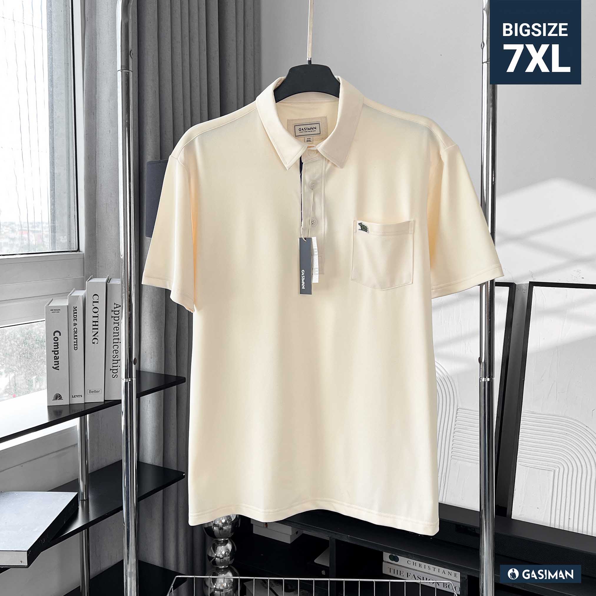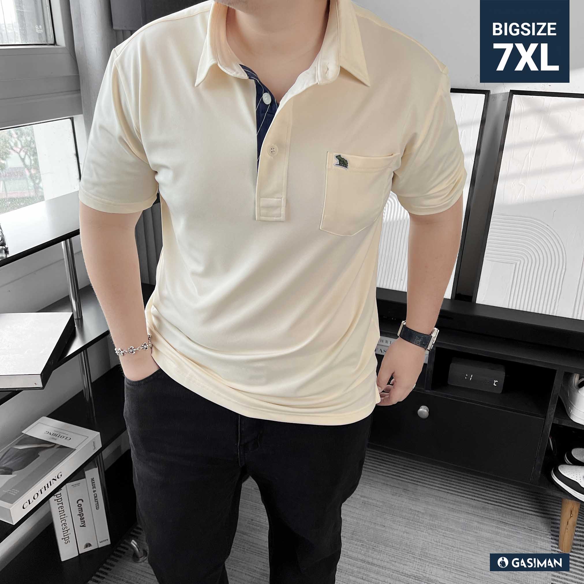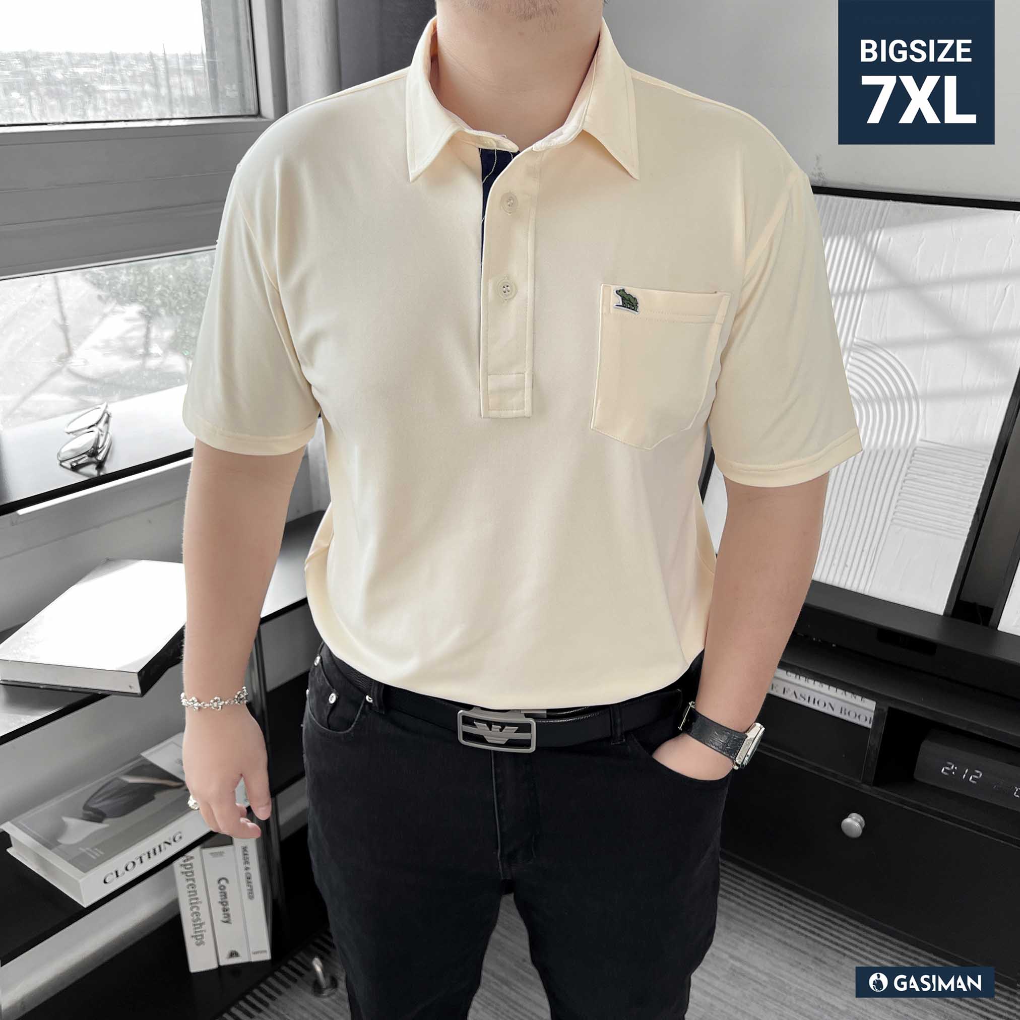 Áo Polo Big size Classy có Túi màu Be