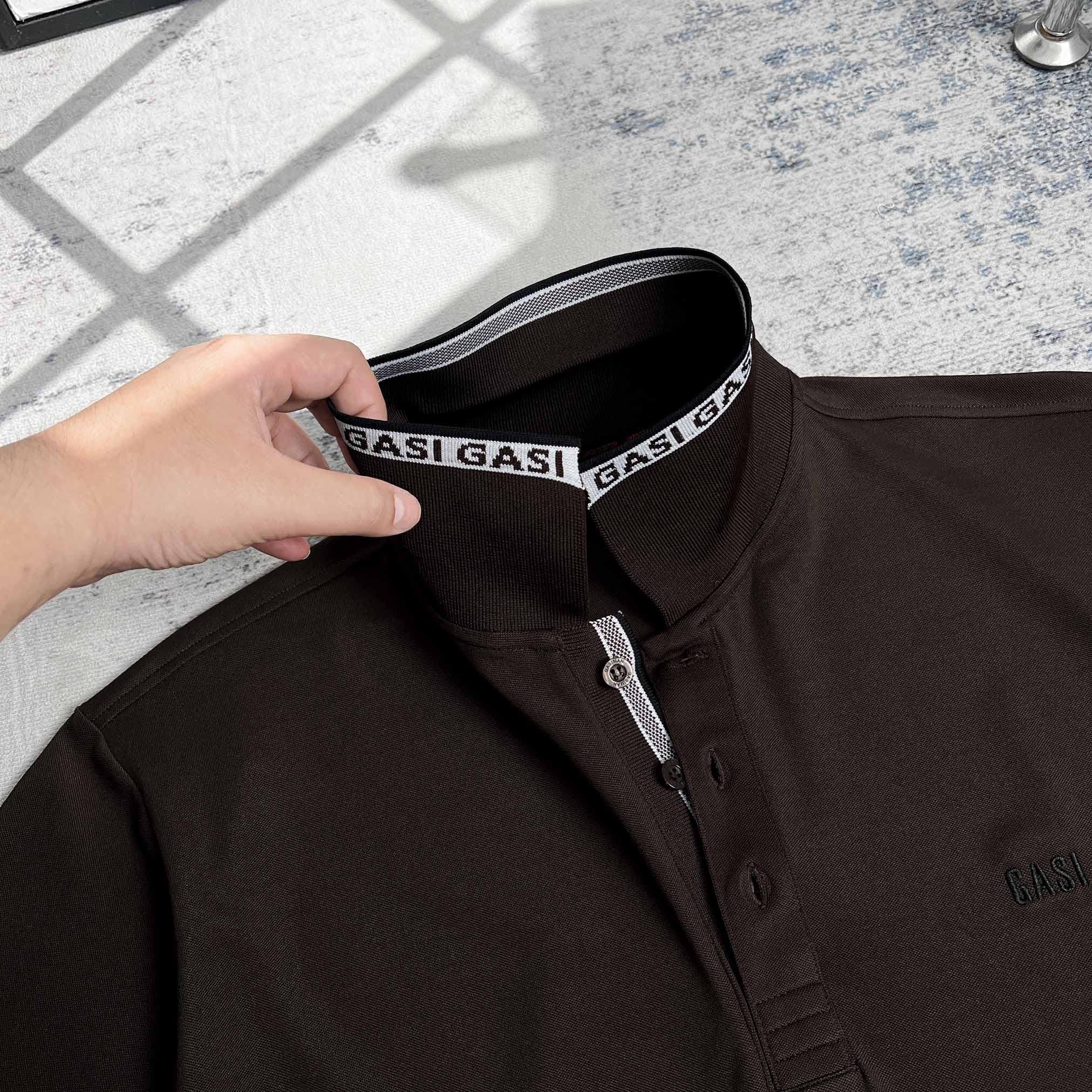 Áo Polo Big size Thêu logo GASI Màu Nâu