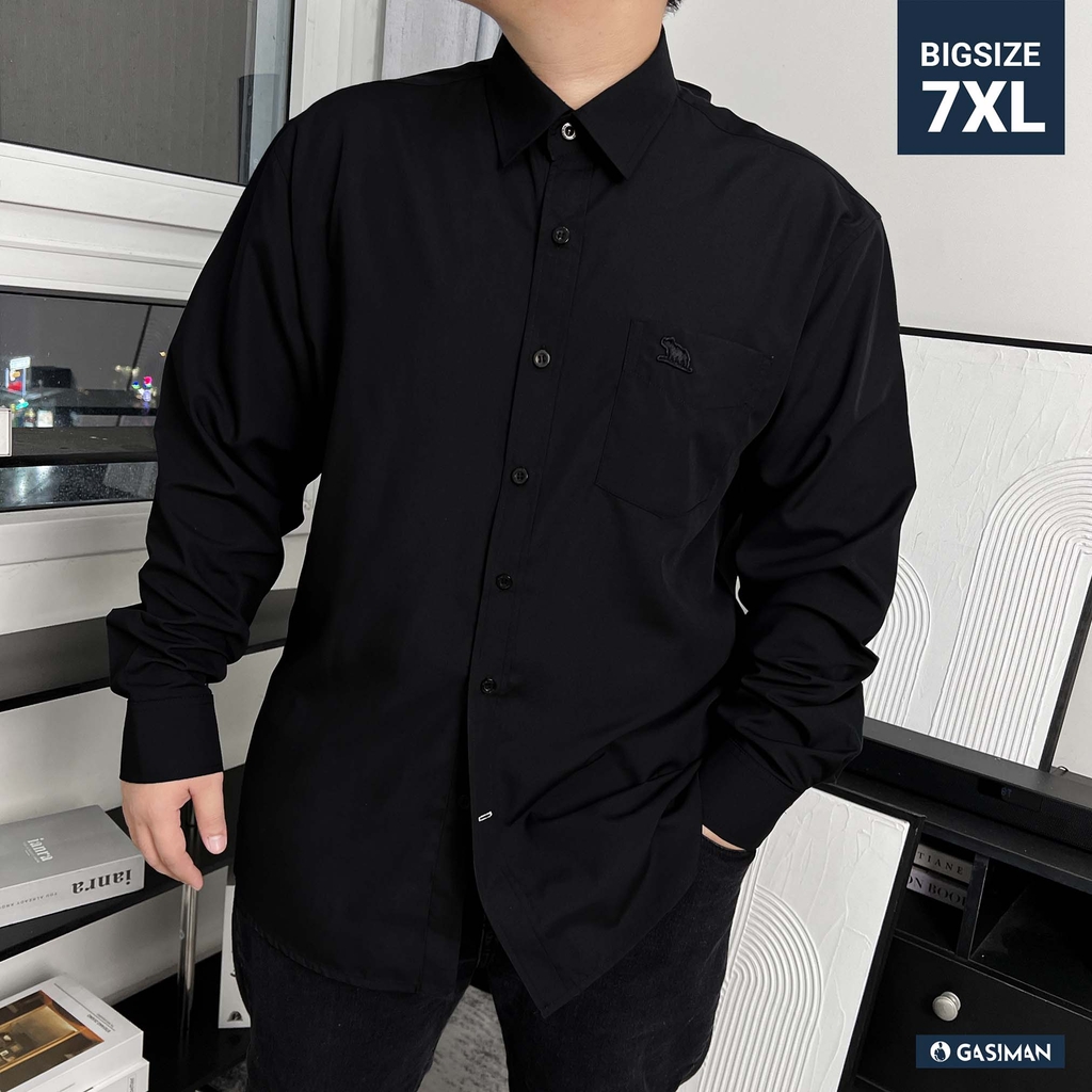Áo Sơ Mi Bigsize Tay dài có Túi Logo thêu Gấu Màu Đen