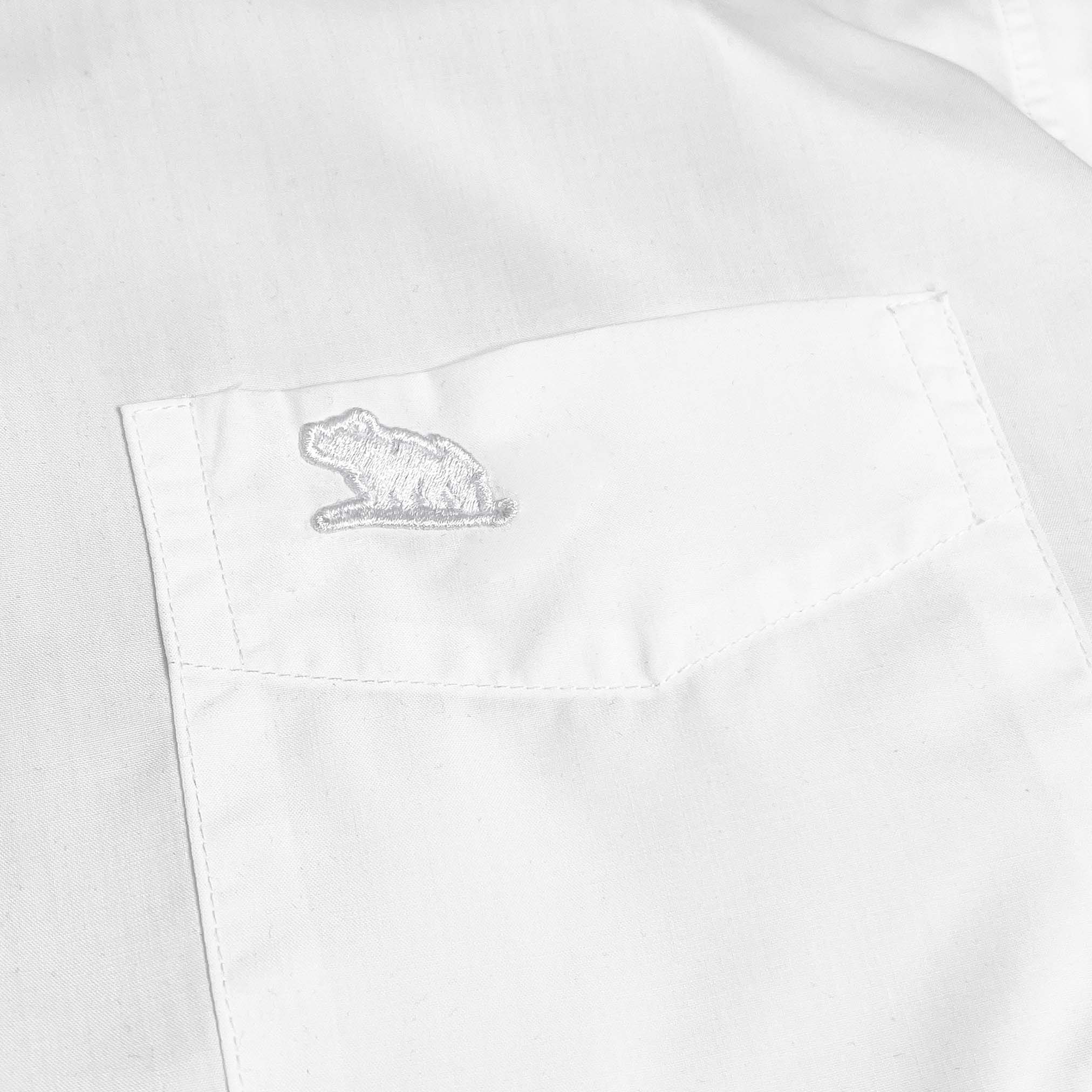Áo Sơ Mi Tay dài Bigsize có Túi Logo Thêu Gấu Màu trắng