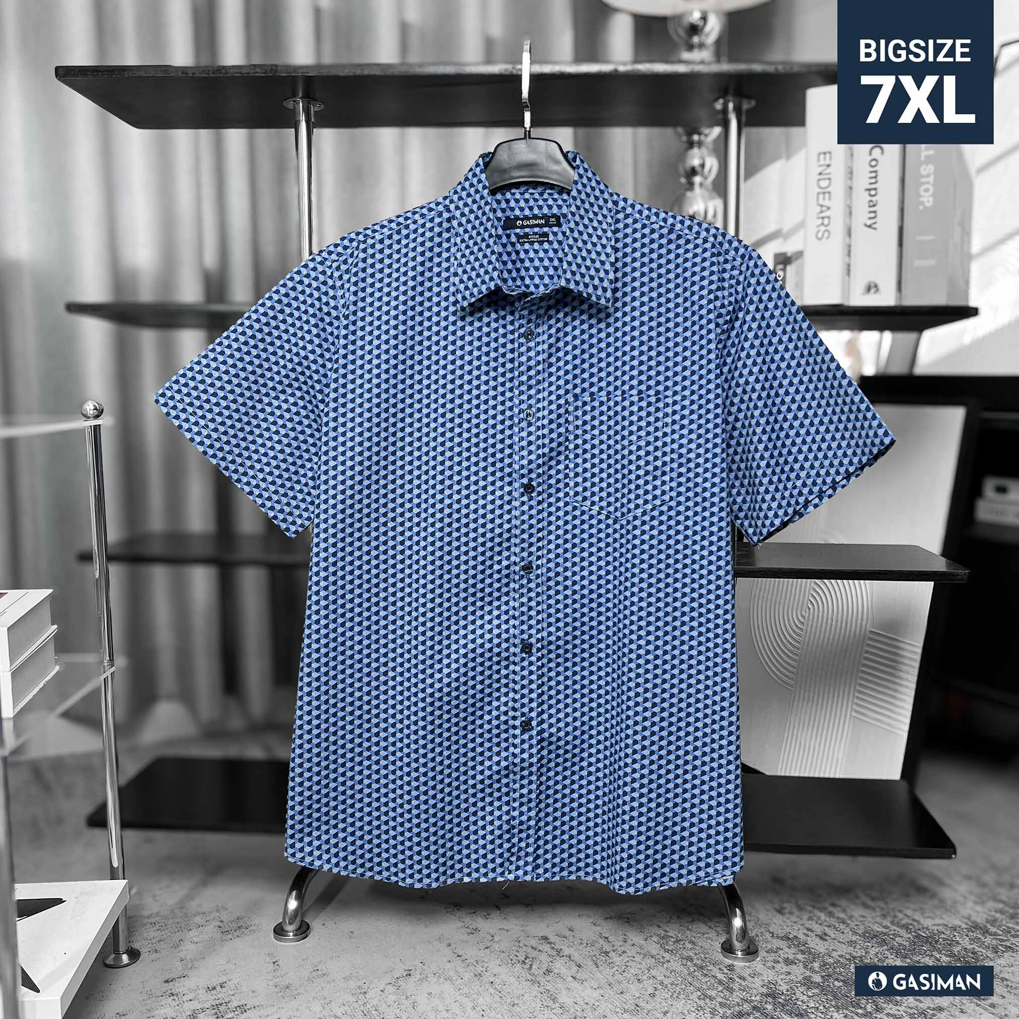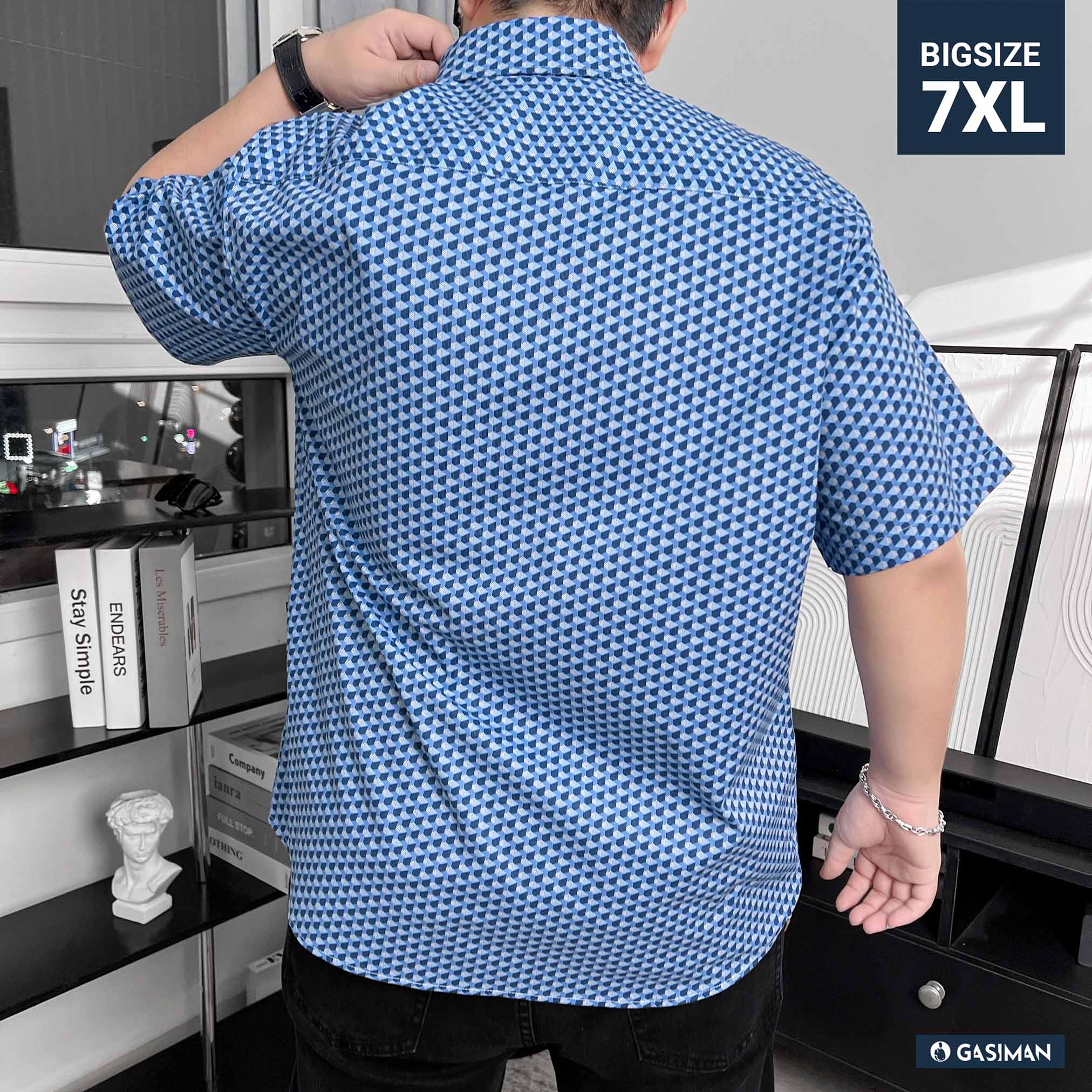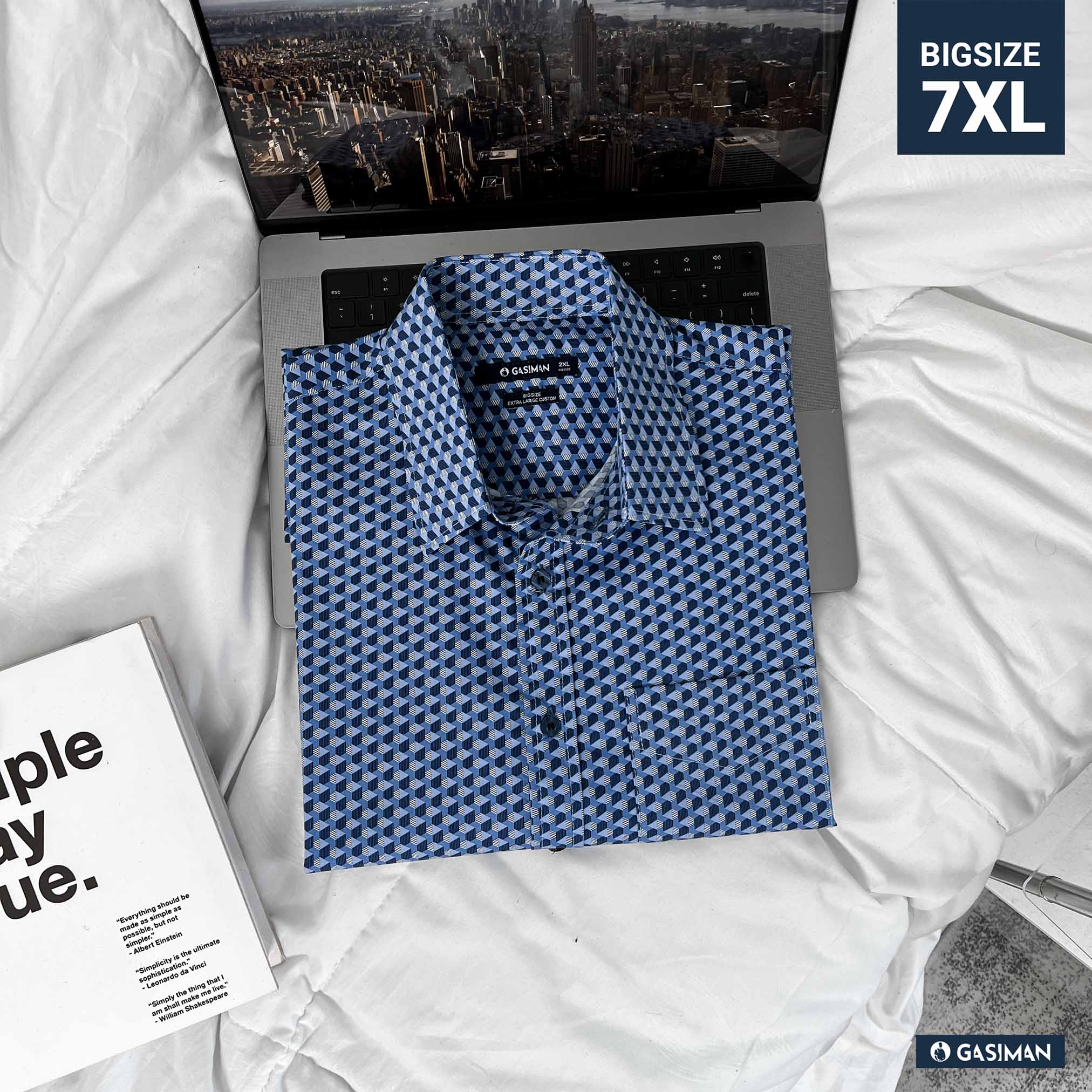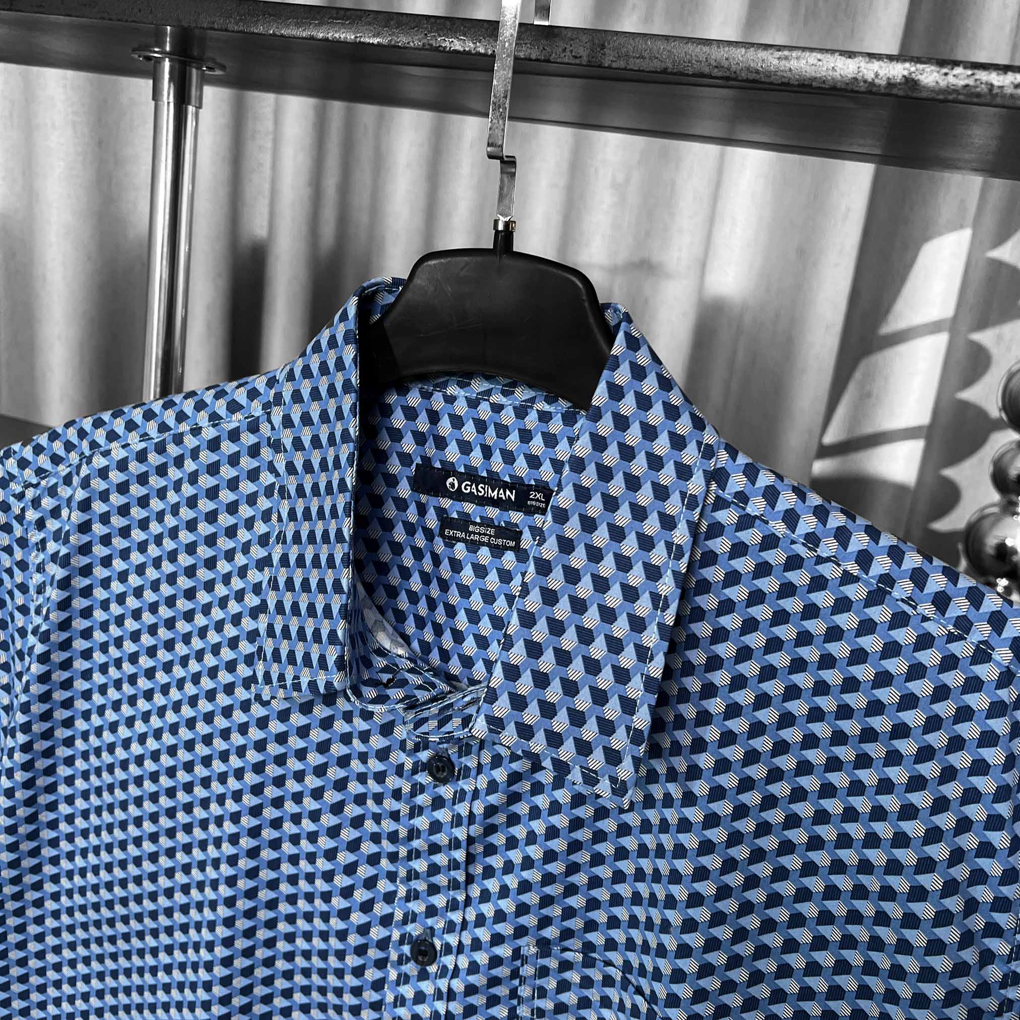 Áo Sơ Mi Tay ngắn Bigsize Hoạ tiết 3D Màu Xanh biển