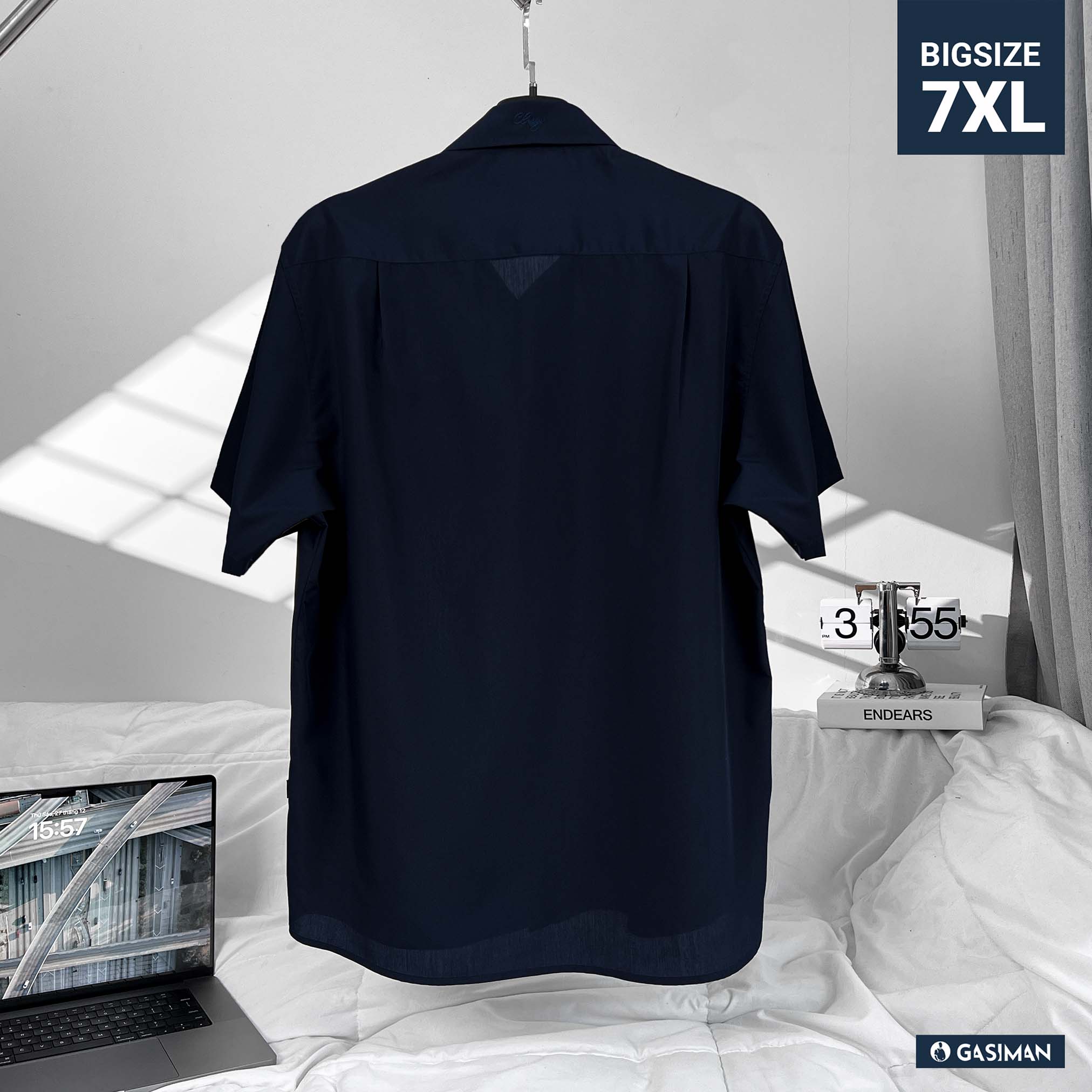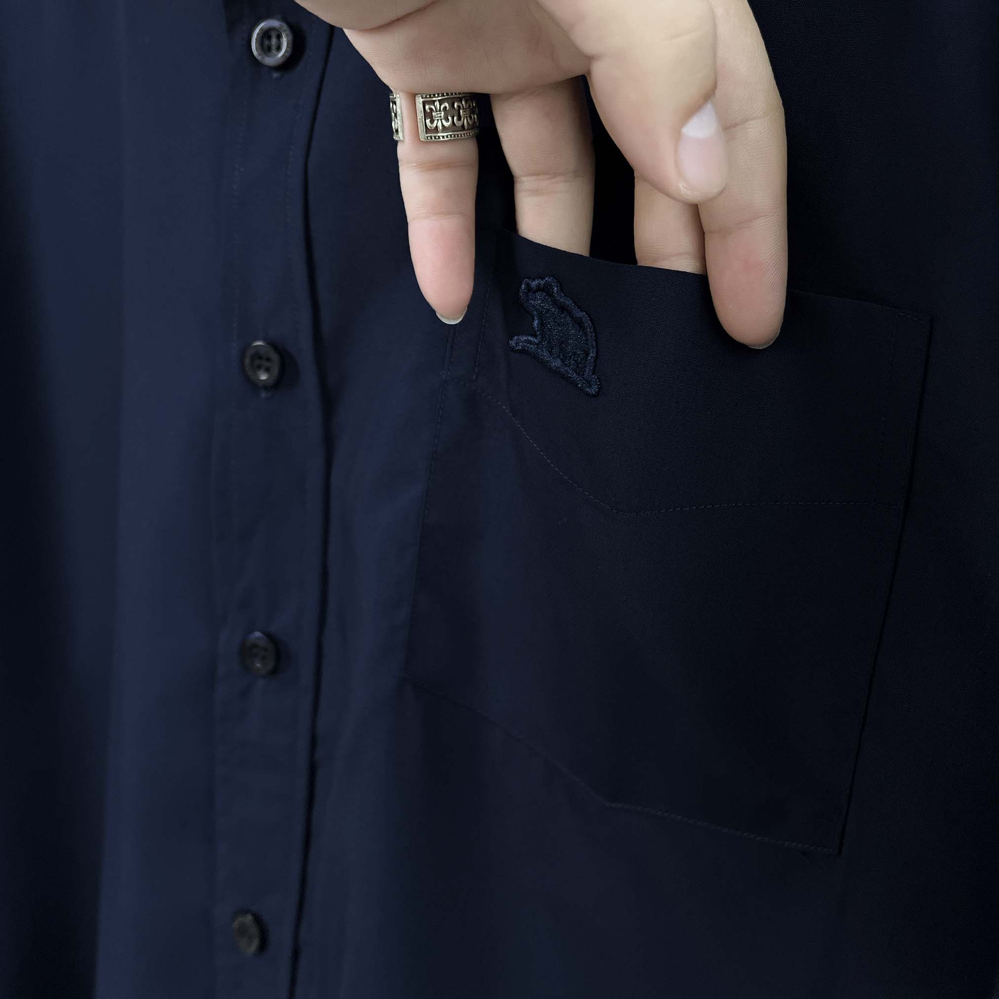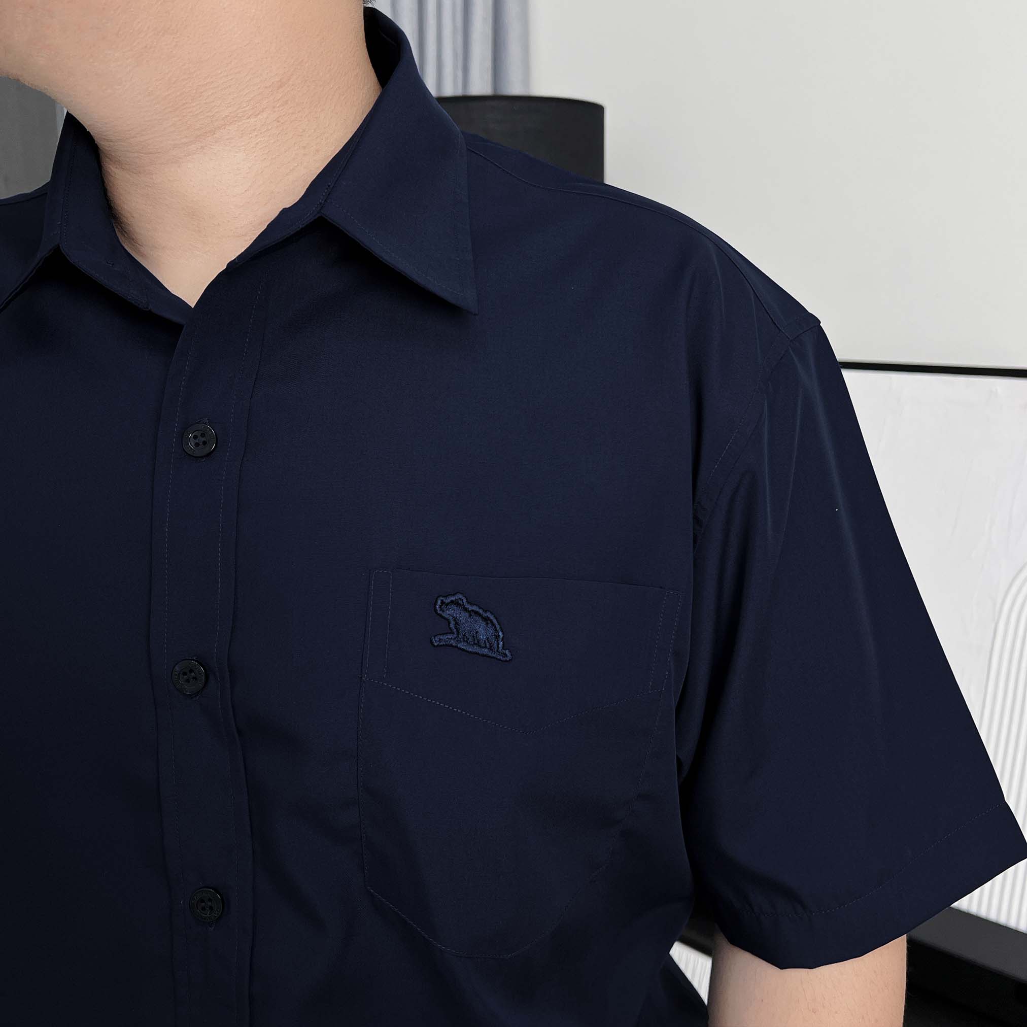 Áo Sơ Mi Bigsize Tay ngắn có Túi Logo thêu Gấu Màu Xanh đen