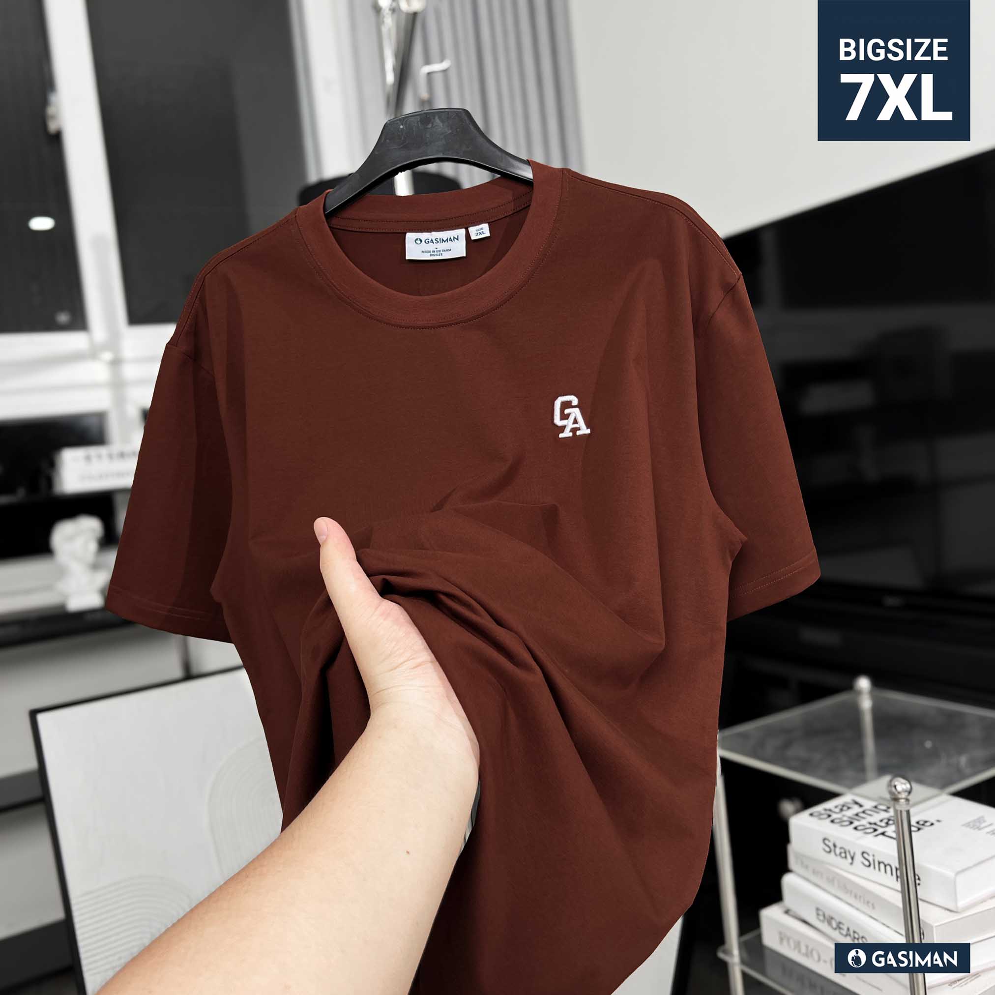 Áo thun Bigsize Thêu logo GA Xẻ tà Màu Nâu đỏ gạch