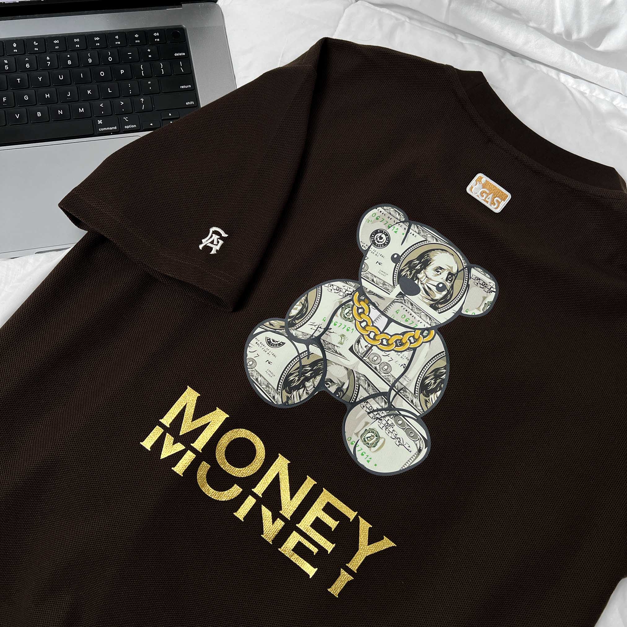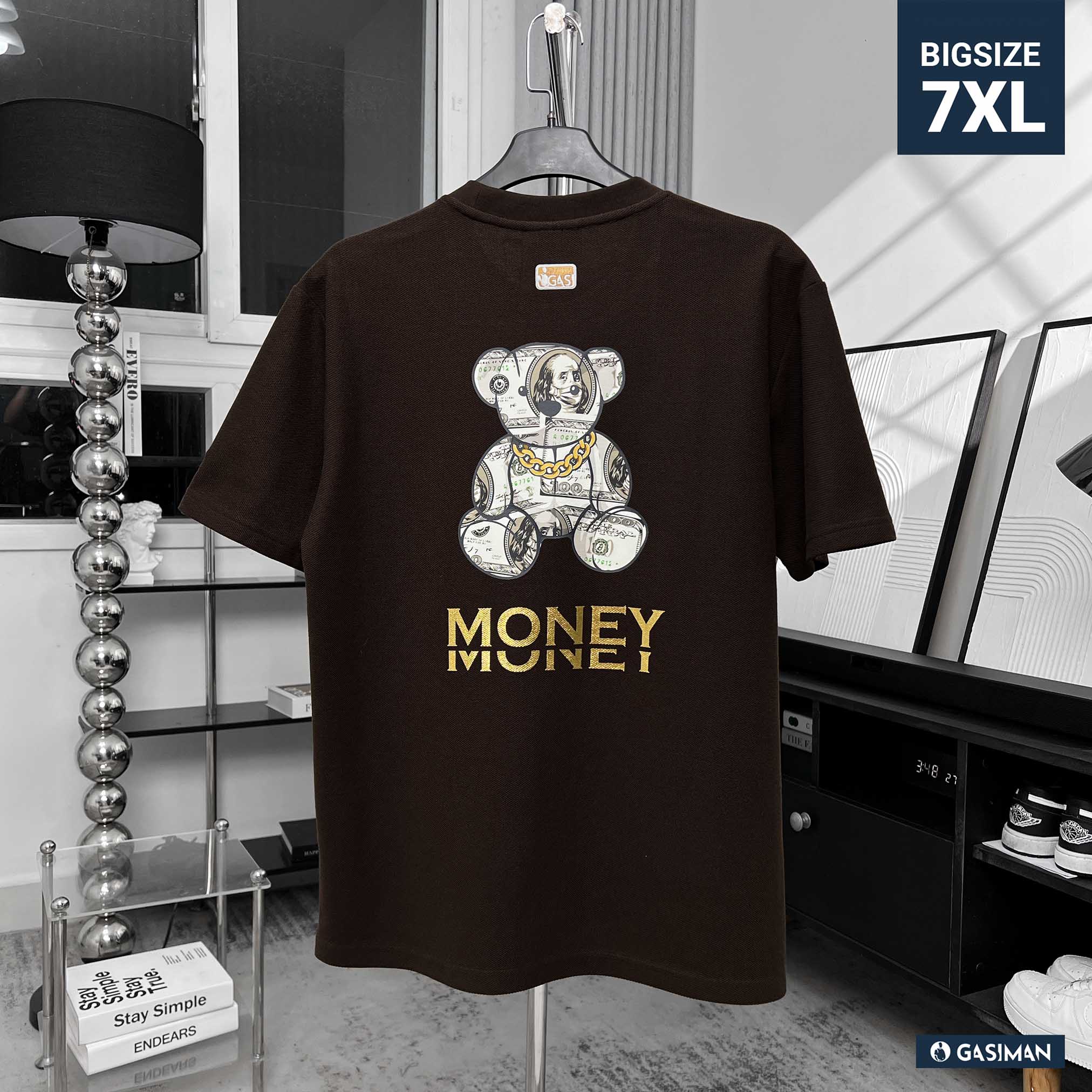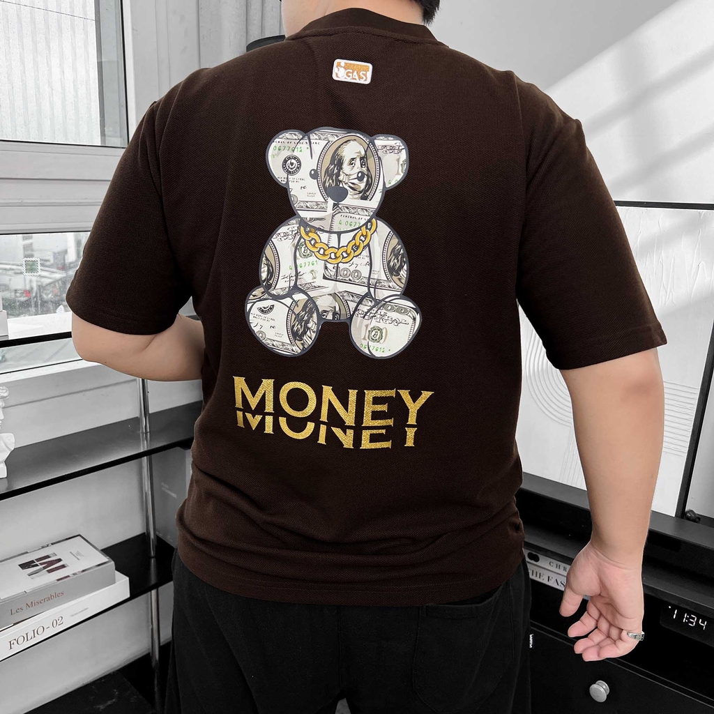 Áo Thun Big size có Túi In Gấu Money Màu Nâu