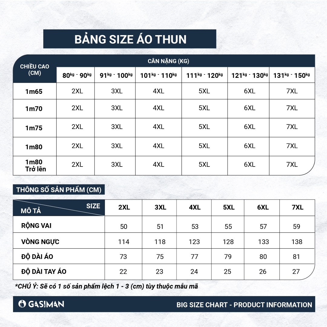 Bảng size áo thun big size