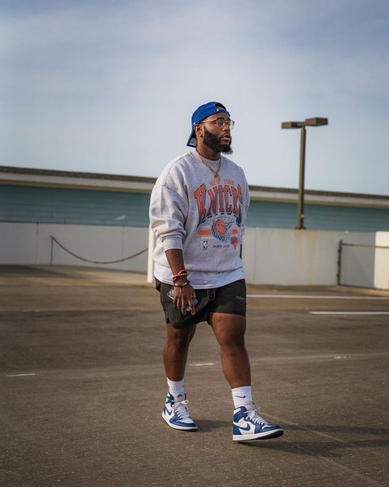 Phong cách đường phố của nam giới ngoại cỡ, tự tin và thoải mái.