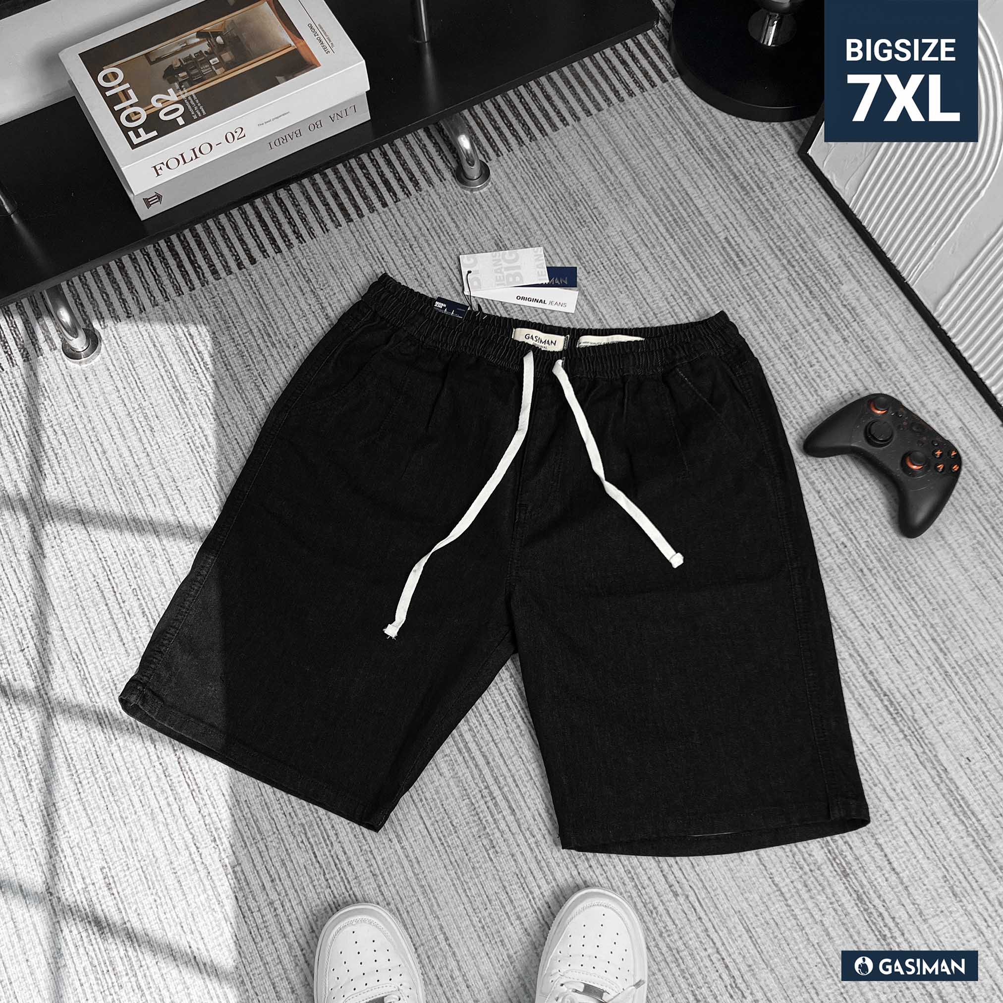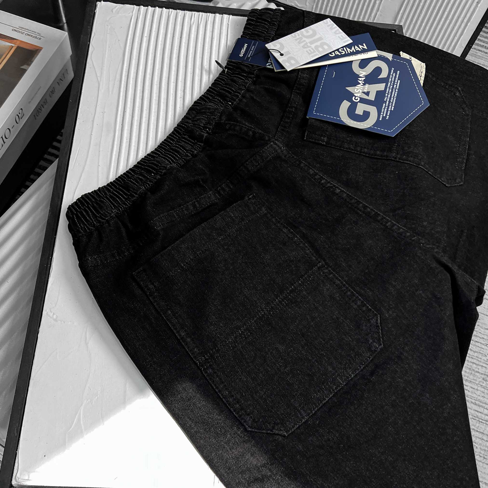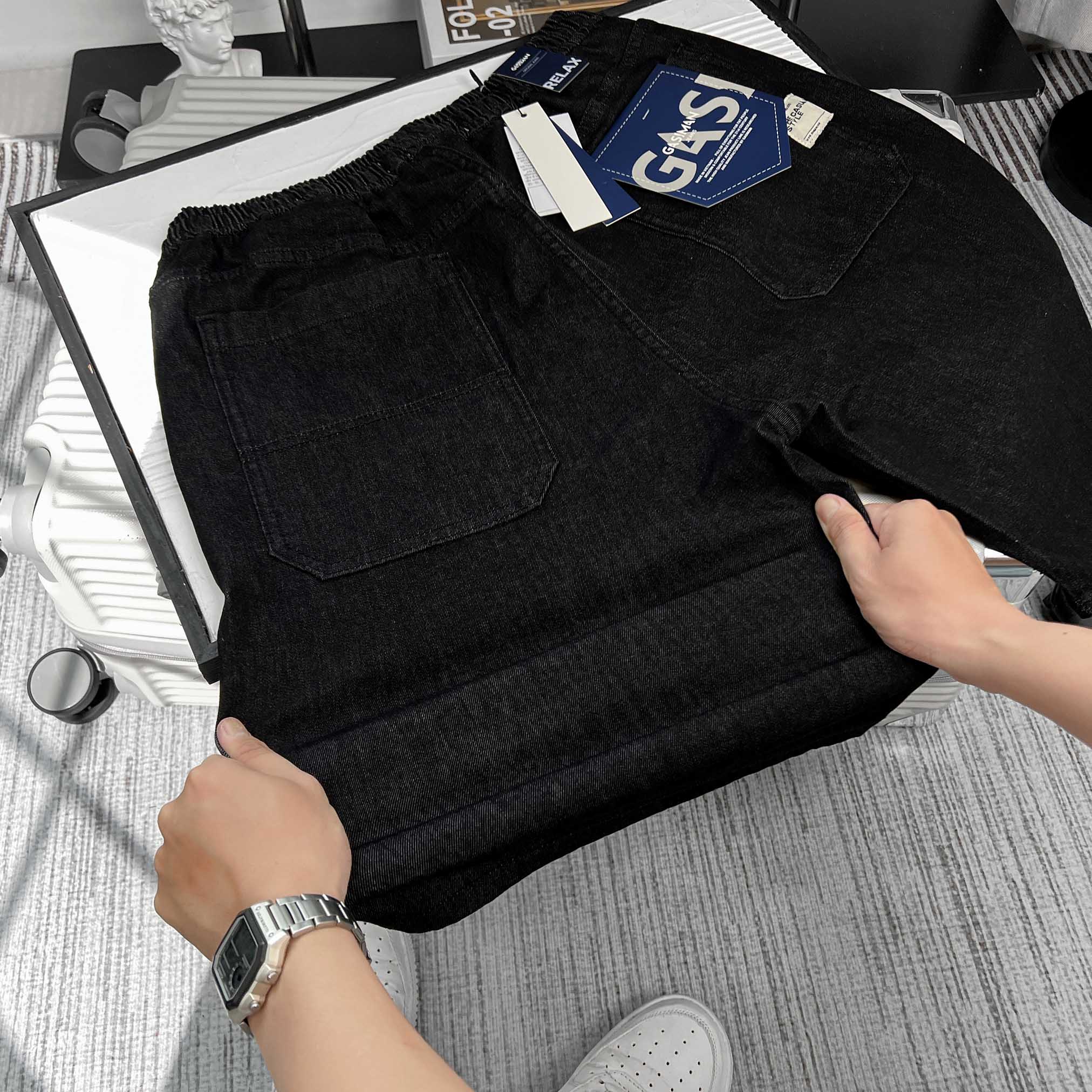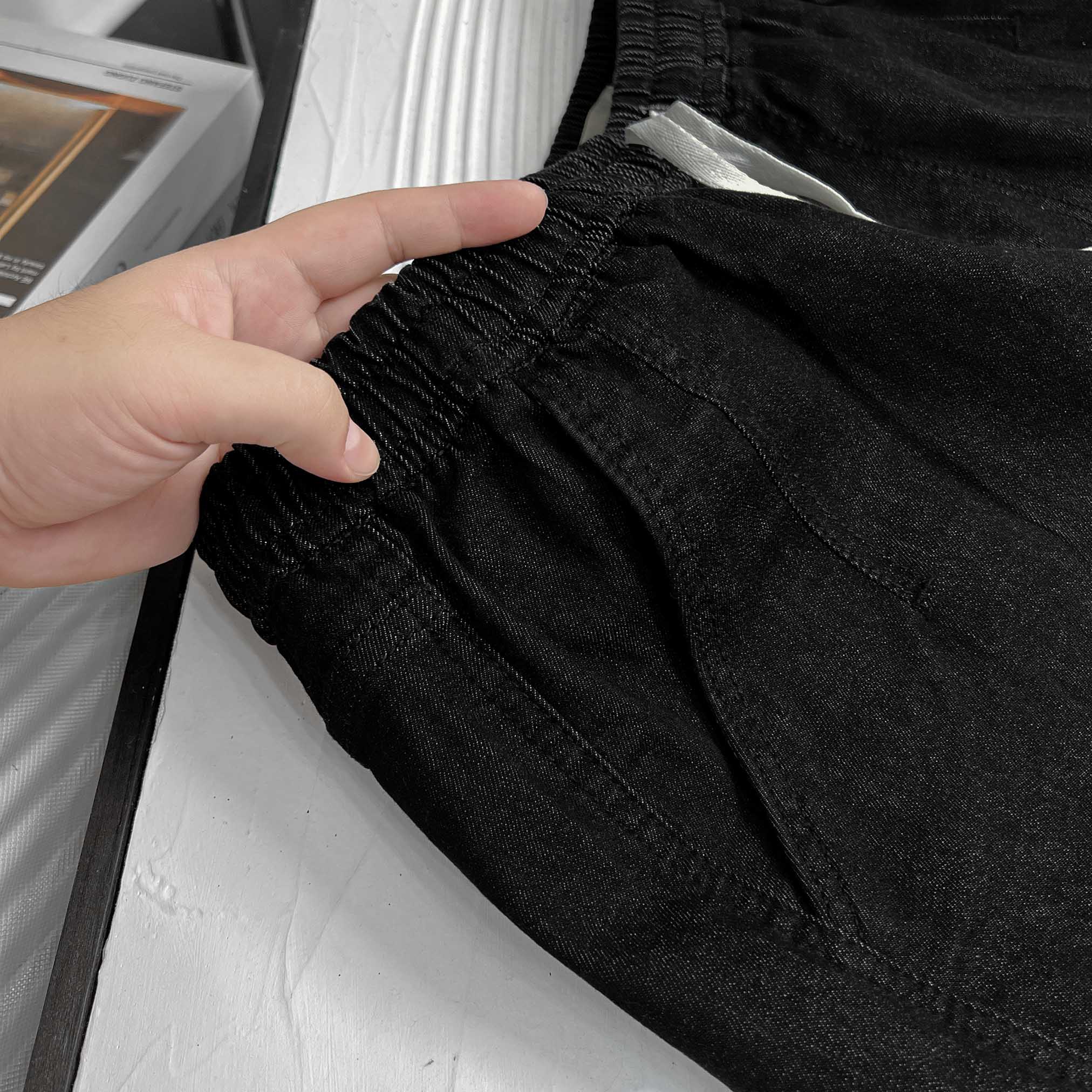 Quần Jean ngắn Lưng thun Xếp ly màu Đen