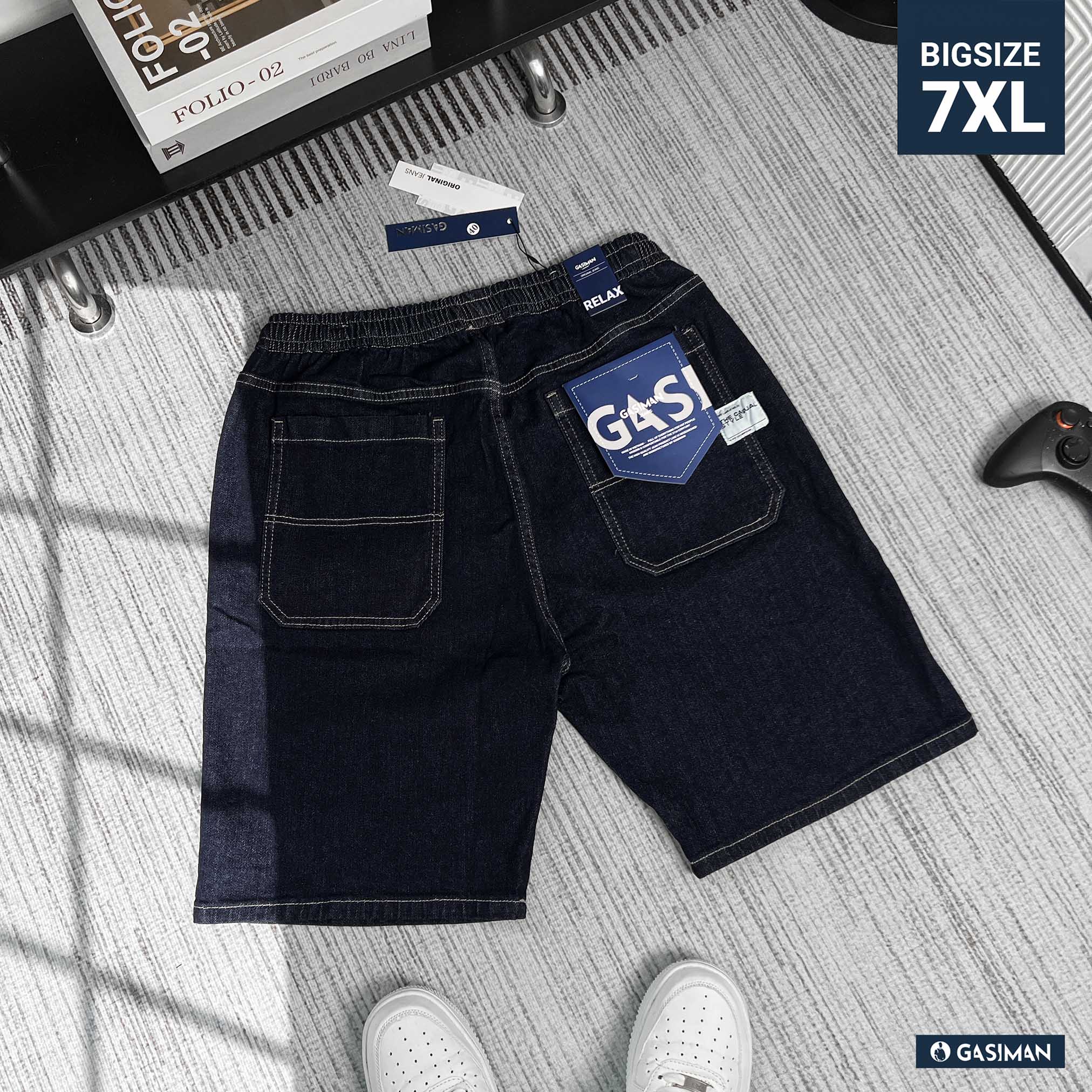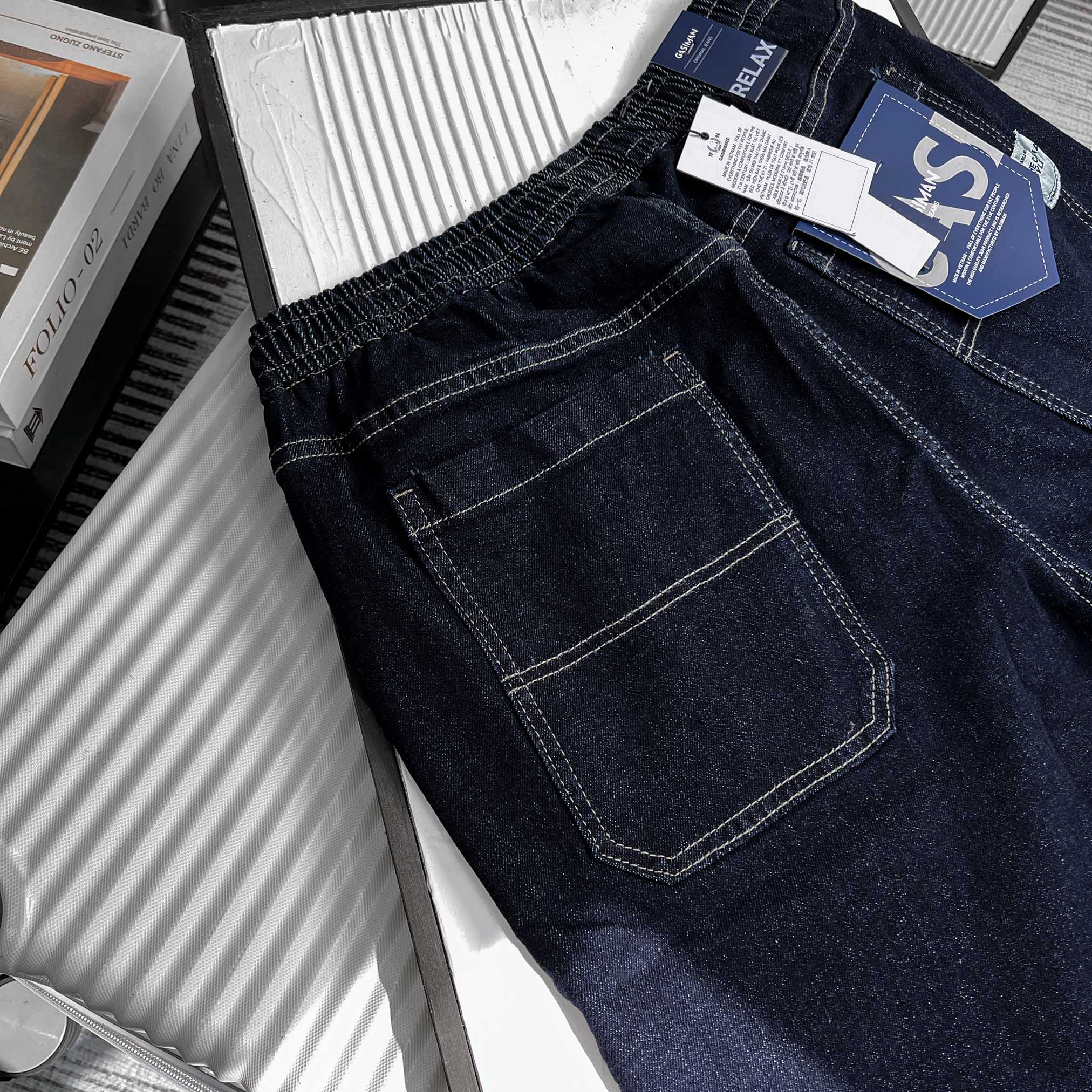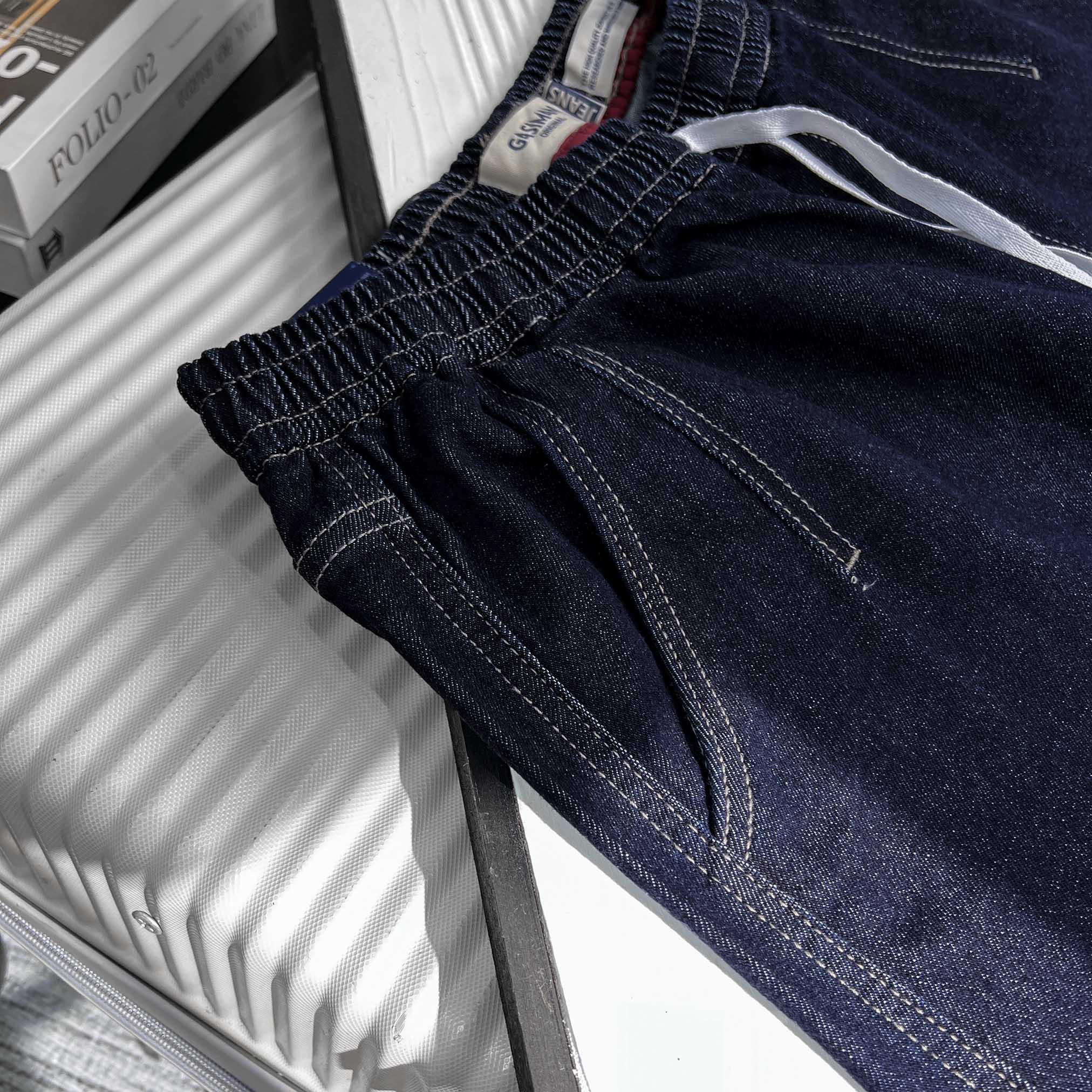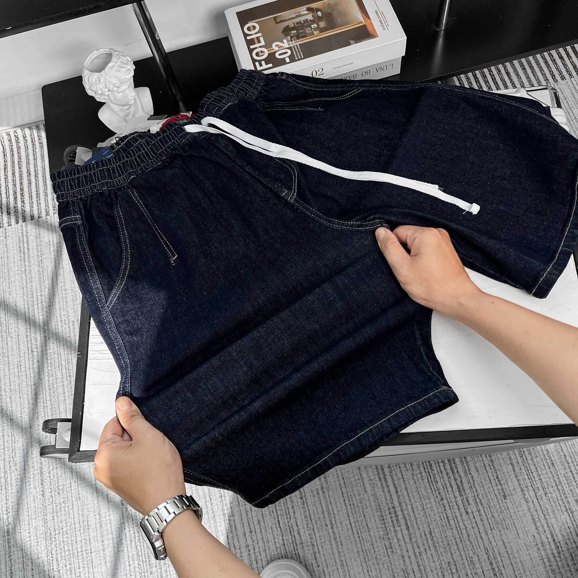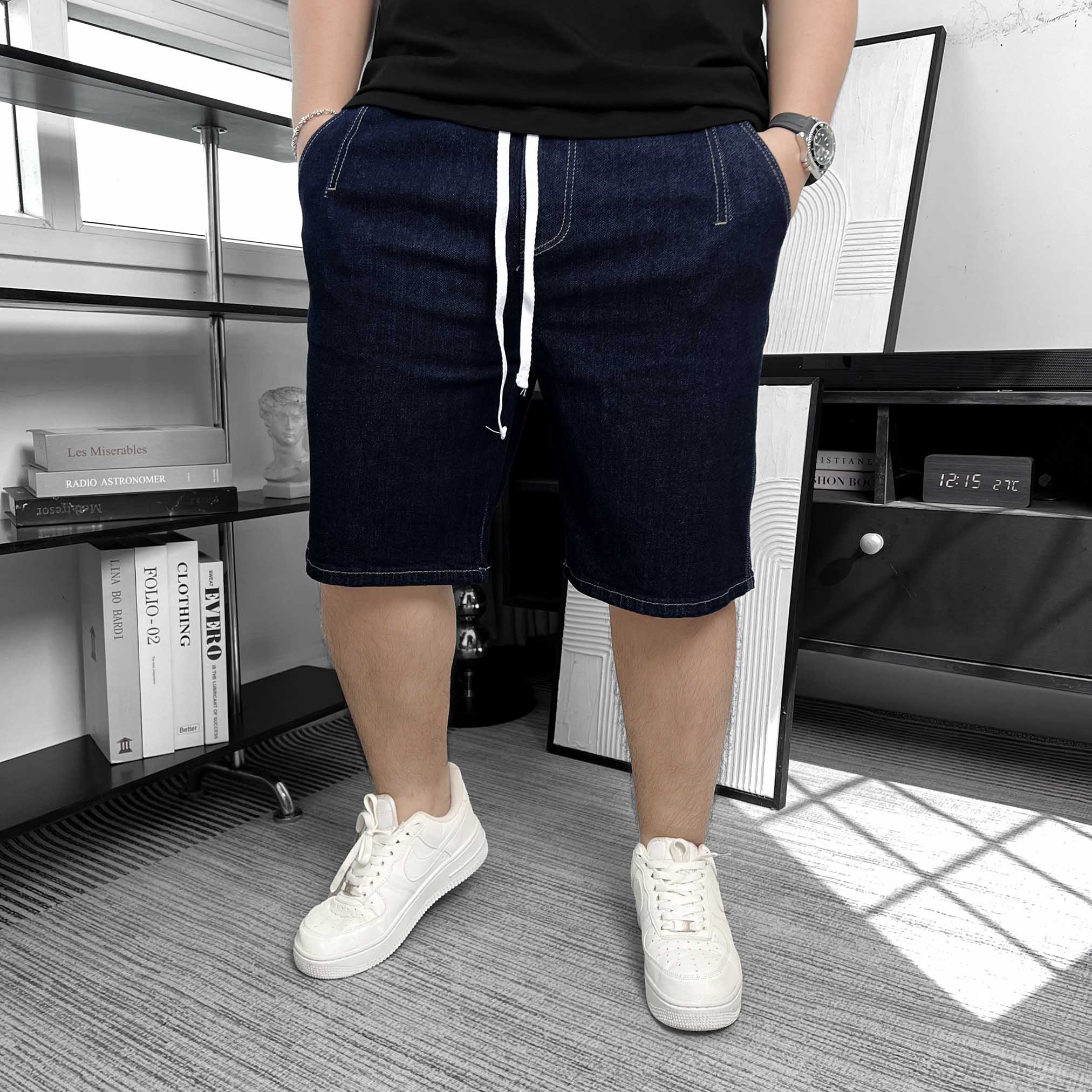 Quần Jean ngắn Lưng thun Xếp ly màu Xanh Đậm