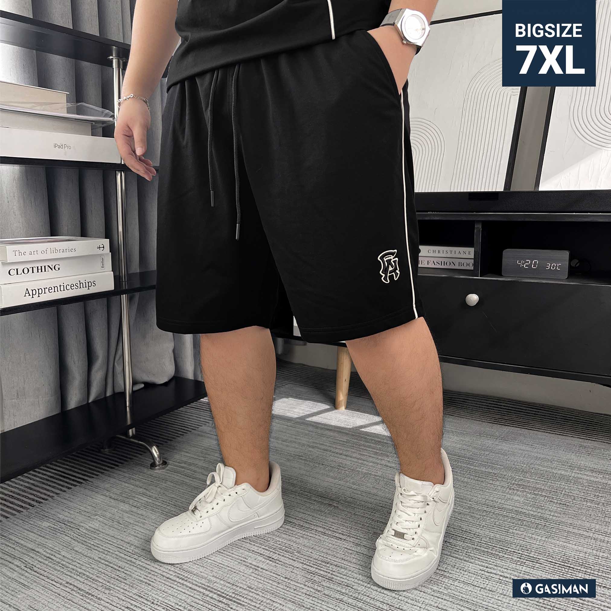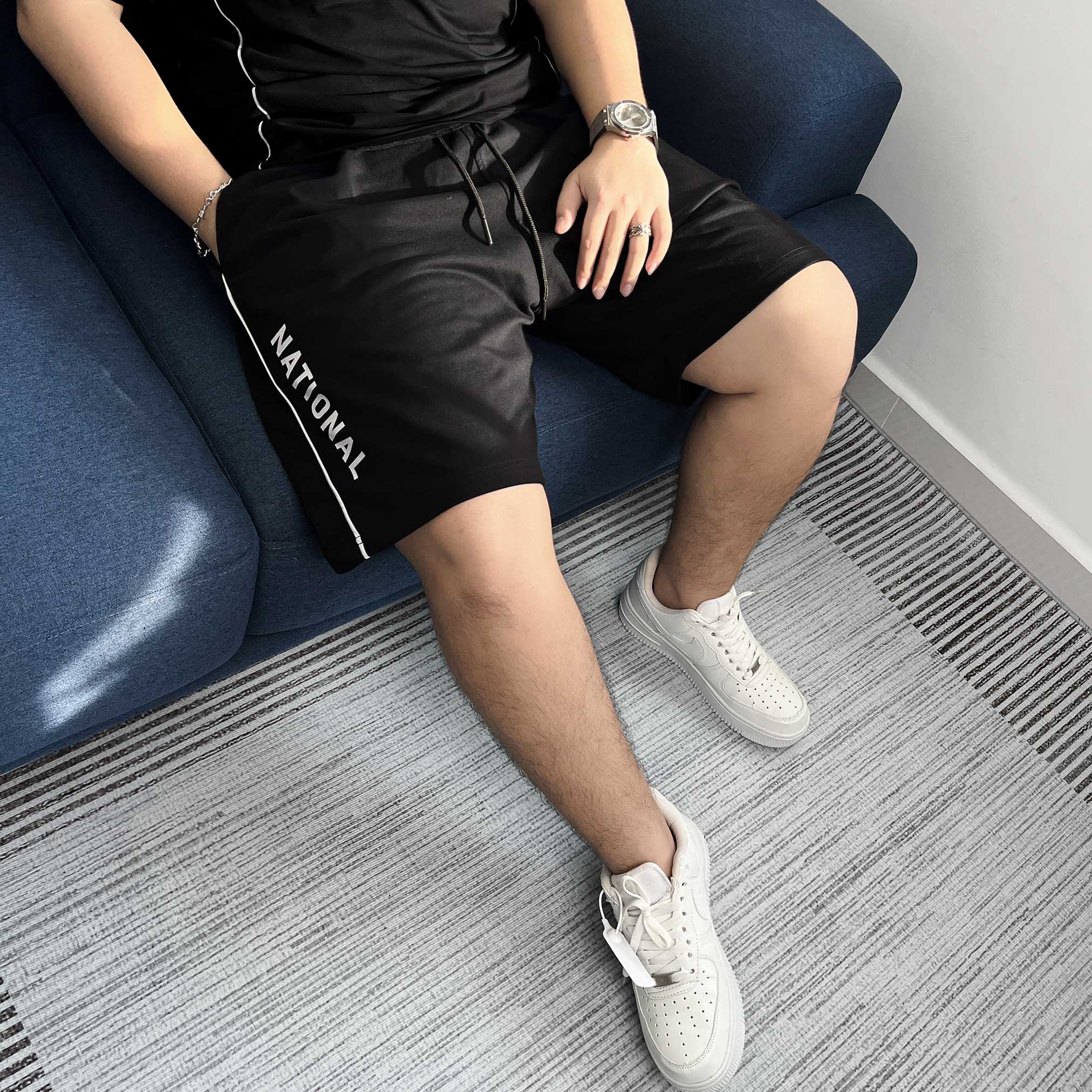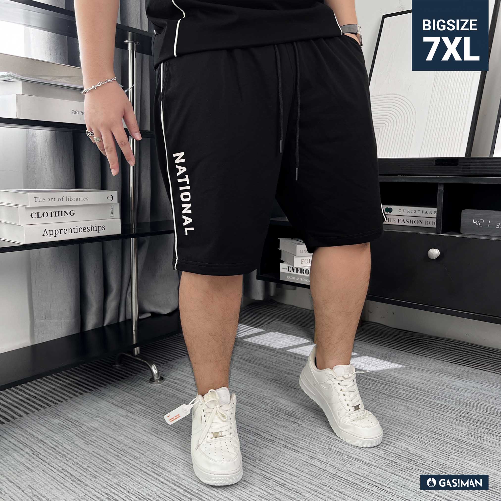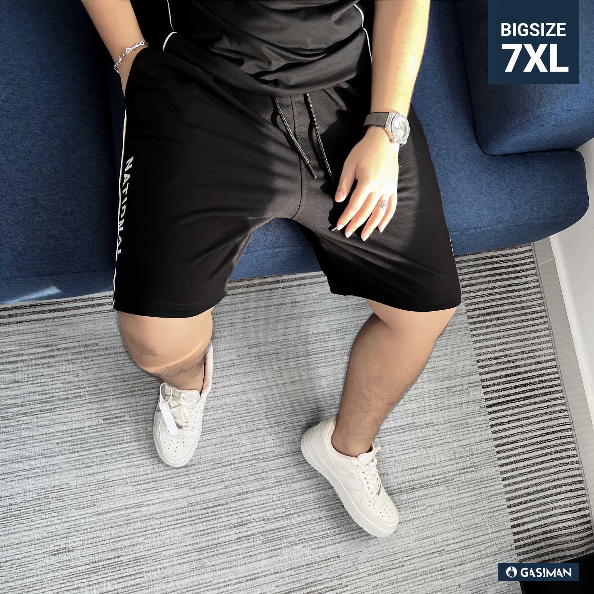 Quần short big size phối line. Chất cotton da cá dày dặn, thấm hút tốt. Co giãn nhẹ 2 chiều, dễ chịu khi mặc hằng ngày. Phối line trắng hai bên tạo cảm giác gọn gàng, hiện đại. Logo thêu GA tinh tế và dòng chữ in “NATIONAL” tạo điểm nhấn nổi bật, cá tính. Lưng thun co giãn thoải mái, phù hợp mặc dạo phố, cà phê hay đi chơi cuối tuần.