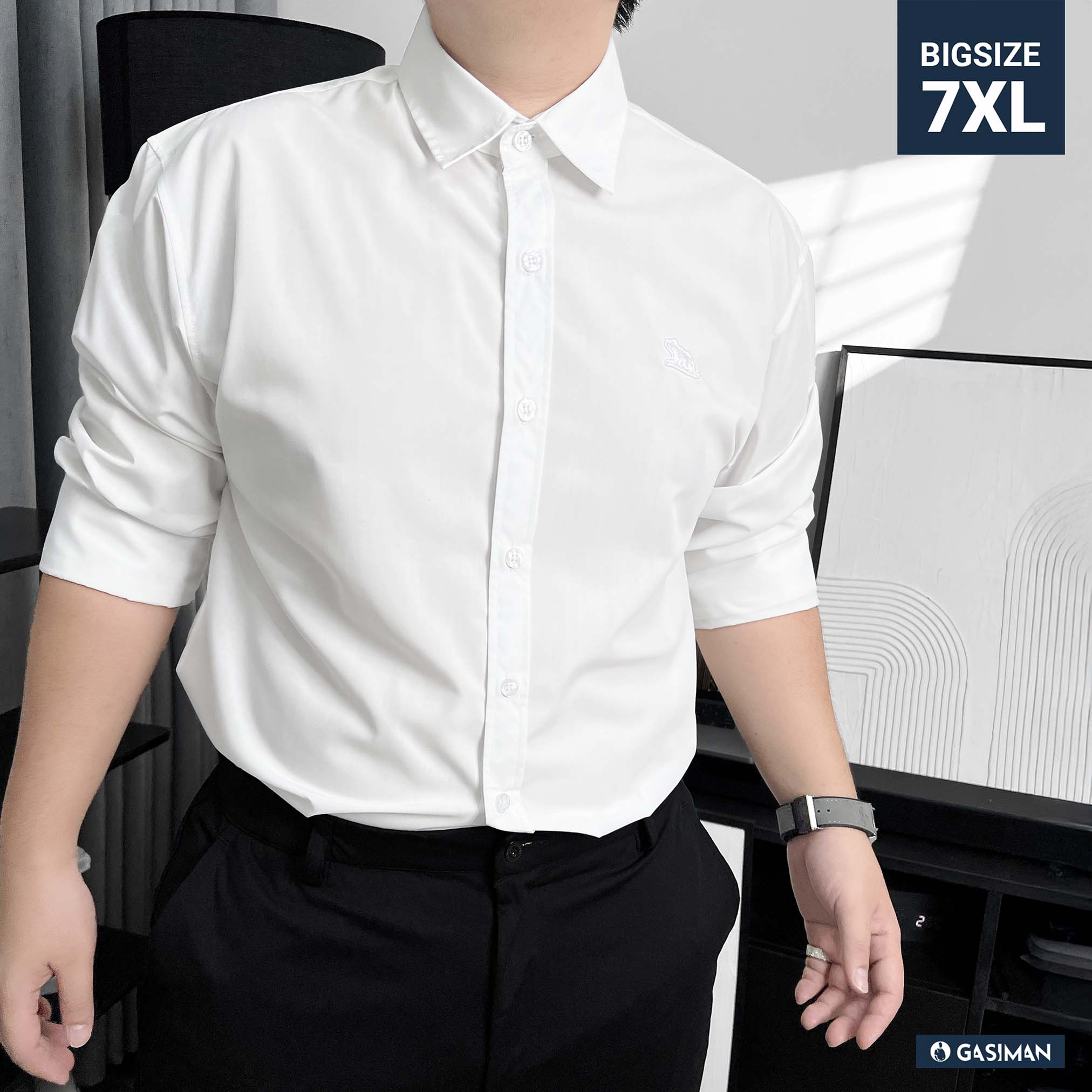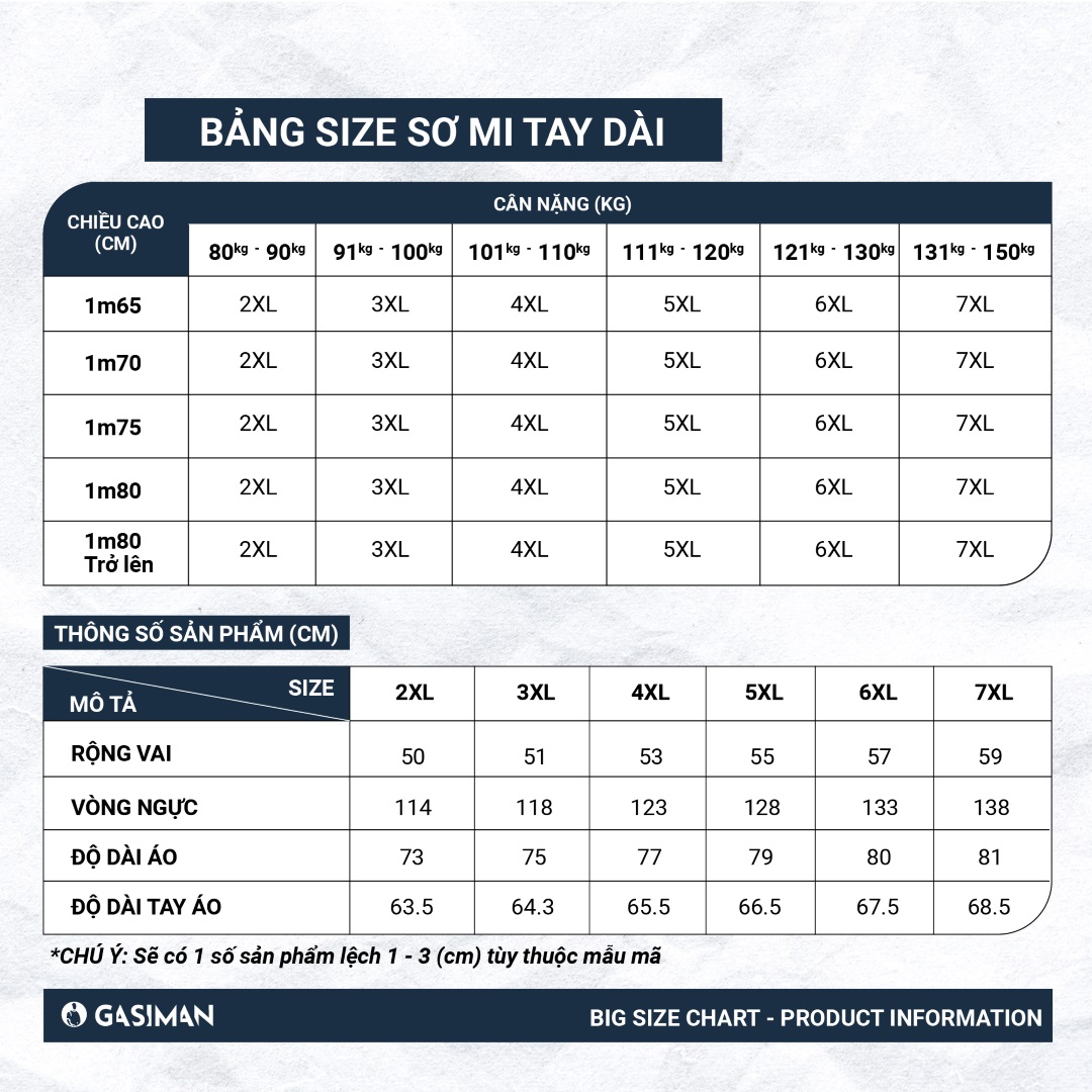 GASI làm sơ mi đúng kiểu này luôn – đo tay theo từng size từ 2XL đến 7XL, chứ không "nới đại cho có" như nhiều chỗ.